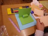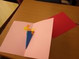 【4年生】図工 とびだすカードづくりをしています。初めに仕組みや作り方を確認して、思い思いのカードを作っていました。紹介された仕組みをさらにアレンジしている子どももいました。