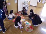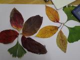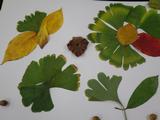 いろとりどりの葉っぱやどんぐりを使って、海の中の魚たちや花火などを描いていました。