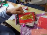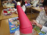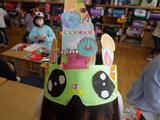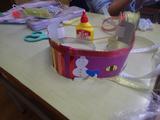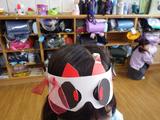 図工 わっかでへんしん 紙を輪にして頭に乗せたり腰に巻いたり。眼鏡のような形の紙を上手に生かして変身していました。