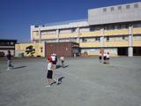 体育 体つくりの運動 3本のラインにそれぞれ鬼が立っていて、その鬼にタッチされないように反対側まで走り抜けています。周りの人の動きをよく見ることができるとゴールに辿り着きやすいようです。