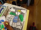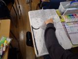 図工 カラー版画に取り組んでいます。彫り進めて色を付けて、また彫り進めて・・・を繰り返し、出来上がりをイメージしながら進めています。