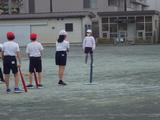 体育 今週からベースボール型ゲームが始まりました。今日は、打つ道具やボールの種類を変えながらお試しの時間でした。