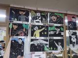 図工 色彩版画の作品が仕上がり、教室前に掲示してあります。後ろから光が指すととてもきれいです。