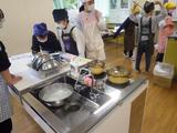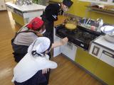 家庭科 ガラスの鍋を使って、ご飯が炊けるまでの様子を確かめました。炊飯器や土鍋で炊くときには見られない様子を見ることができて驚いていました。炊きあがったご飯は、少しこげがありましたが美味しくいただきました。