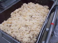 なら茶めしは、本来はお茶を入れて炊きますが、給食ではしょうゆを入れて薄い茶色に仕上げます。