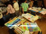【3年生】図工 お話を聞いて思い浮かべた様子を絵に表しています。今日は、かいている途中で友達と交流する時間を取りました。友達の絵のよさやおもしろさを見つけて、伝え合ったり自分の作品に生かしたりしていました。
