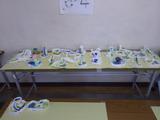 図工 「水の流れのように」の作品が出来上がってきて、理科室前に展示されています。