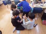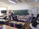 算数 かけ算九九の習熟のために、先生や友達の前で言ったり、かけ算かるたをしたりしています。