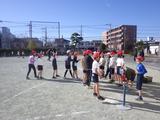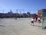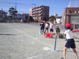 体育 ベースボール型ゲーム 打つ方向や守る場所を考えて、声を掛け合いながら試合を楽しんでいました。