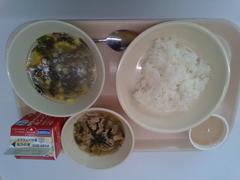 今日の給食は「豚肉ともやしのオイスターソース丼(ごはん)、わかめとコーンのスープ、「かわさきそだち」の梨ゼリー、牛乳」