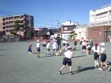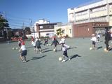 体育 今日は川崎フロンターレの巡回サッカー教室で、コーチと一緒にサッカーを楽しみました。