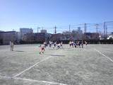 フラッグフットボール 今日も講師の先生に来ていただき、ボールを渡すふり作戦などを教えてもらいました。