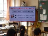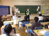【おはなしの森】今日は3,4年生が読み聞かせを楽しみました。4年生の教室では狂言や落語の絵本を読んでもらい、楽しそうに聞いていました。