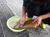 【3年生】昔の道具についての学習の一環として、洗濯板での洗濯を体験しました。冷たい水に苦戦しながら洗濯をして、「昔の人はすごい」「何か工夫していたのかな」と考えていました。