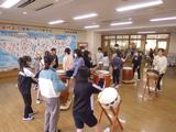 和太鼓クラブ 今日は4,5年生が集まって、先生の笛の音と合わせながら練習をしていました。