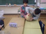 】図工 先週、段ボールを貼り付けた風船を割り、半分に切ったものを使って作品作りをしました。完成したものの写真が撮れていないので後日紹介します。