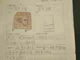 社会科 昔の道具について調べたことをプリントに書きました。また、映像でかまどを使う様子を見て、今の暮らしと比べていました。