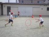 体育 今日も様々な用具を使った運動を楽しみました。今日は2つ以上の道具を組み合わせてできる動きを友達と考えていました。