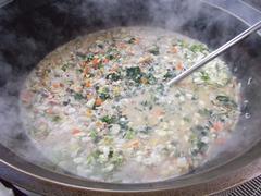 この日はかながわ産品学校給食デーで、神奈川県でとれた小松菜や大根、米、牛乳を使っています。