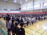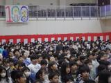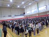 【朝会】1~5年生が体育館に集まり、6年生とのお別れ式の練習をしました。