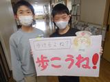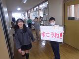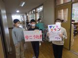【保健委員会・ダンスクラブ】保健委員会は廊下の歩行を呼びかけるために、ダンスクラブは発表会の宣伝のために、ポスターをもって校内を回っていました。