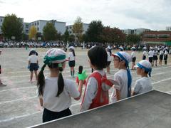 校庭では、運動会に向けて練習したり、楽しそうに友達と遊んでいる子がいました。