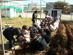 小松菜の種をまきます。いい小松菜を育てるためのコツを地域の方から教えてもらいました。