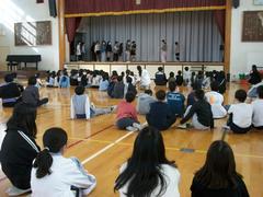 「協楽祭」は、みんなに向けて表現したいものがある人の発表の場です。今日は5年生が連続の長縄跳びをやりました。
