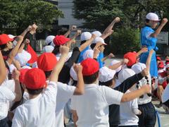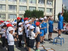 運動会当日の動きをみんなで確認したり、準備運動の練習をしたりしました。