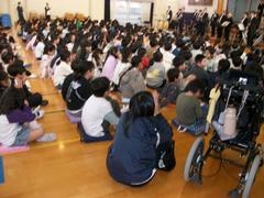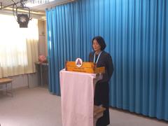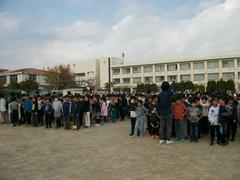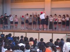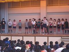 4年生の先生が司会です。校長先生からは、明日からの修学旅行や、健康等についてのお話がありました。
