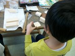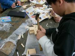 かなずちとくぎを使って作っています。何ができるのでしょうか?