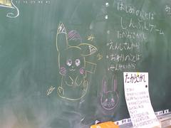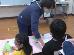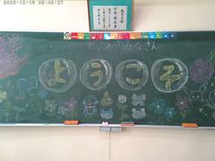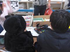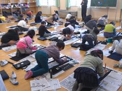 書き初めの練習、算数の二等辺三角形の学習などをやっていました。