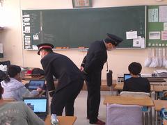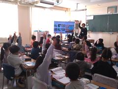 南武線の職員の方が出前授業にきました。子どもたちは南武線の説明を集中して聞いていました。