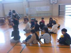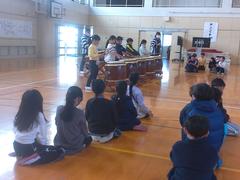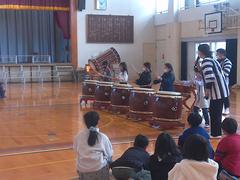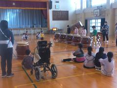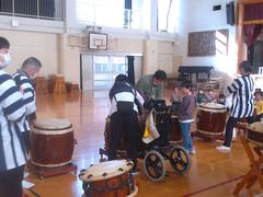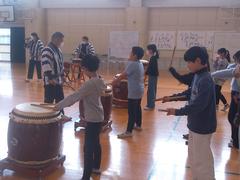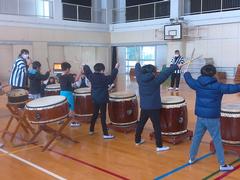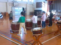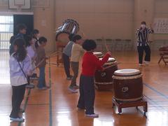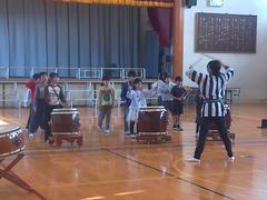 子どもたちが、武蔵野太鼓保存会の方と一緒に和太鼓体験を行いました。太鼓の音が響いて素敵でした。