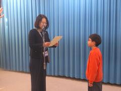 司会は2年生の先生でした。校長先生や支援教育コーディネーターの先生からお話がありました。 生活目標のお話もありました。