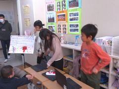 特活室で、のぞみ級の子どもたち全員が集まって食べていました。