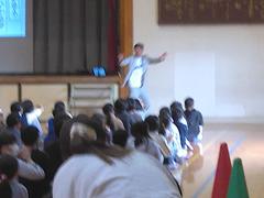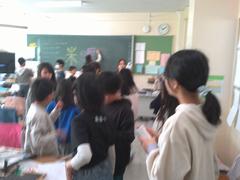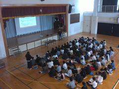 科学者の方を講師として招き、講演を聴きました。真剣にメモをとっていました。