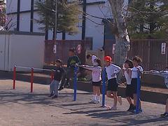 校庭では、かけっこや鉄棒などで元気よく遊んでいる子どもたちがいました。