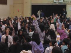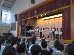 たくさんの委員会から、活動の紹介がありました。最後は今月の歌をみんなで歌いました。