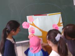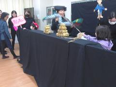 ボランティアの方々が小道具を使いながらお話をします。お話を支える小道具の一つ一つが素晴らしく、終わった後も子どもたちの余韻が続いていました。