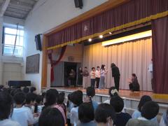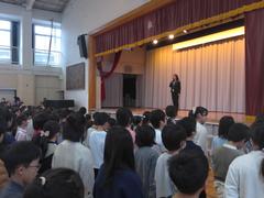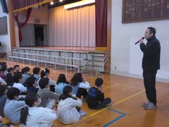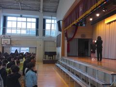 1年生の先生が司会です。校長先生からは「もうすぐ3月でまとめの月」のお話、1年生からは生活目標のお知らせがありました。