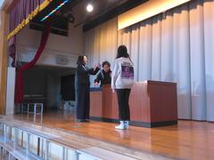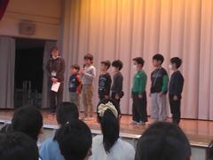 作品展などでがんばった児童に表彰がありました。