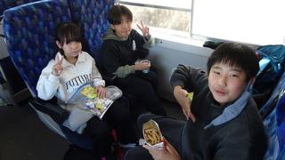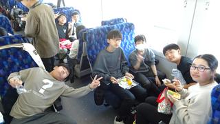 列車の中では疲れを見せることなく元気いっぱいでした。