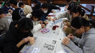 修学旅行の記念となるよう、それぞれ思いを込めて湯呑みに絵柄を入れていました。