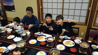 日光名物の湯葉、すき焼き、エビフライなどをおいしくいただきました。