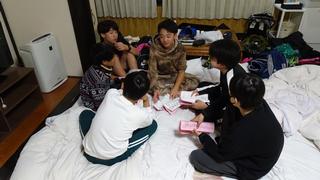 係別会議を終えると、部屋ごとに翌日の予定を確認し合ったり、消灯までリラックスしたりして過ごしていました。(※女子児童の部屋の写真は、女性教員が撮影しています。)