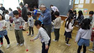 近隣の3つの町会から、約30名の方々に来ていただき、1年生が昔遊びの会を開きました。