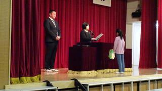 そして、5年生代表による後期を振り返るスピーチでは、初めてのことにも進んでチャレンジしてきたこと、失敗を次に生かせるようになったことなど、4月から学校をリードしていく立場にふさわしい言葉が伝えられました。