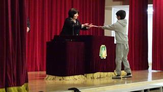全校児童が見守る中、校長先生から各学年の代表に修了証書が手渡されました。