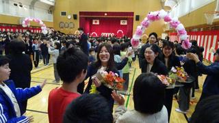 先立って行った卒業を祝う会では、各学年の代表から6年生へのお祝いの言葉が贈られるとともに、全校で花道を作って拍手で見送りました。
